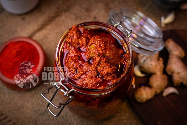 A fiery and tangy delight straight from Telangana kitchens! Made with raw mangoes, koyur ginger, local garlic, ground spices, and cold-pressed groundnut oils, this pickle brings the rustic, bold flavors of tradition to your plate.