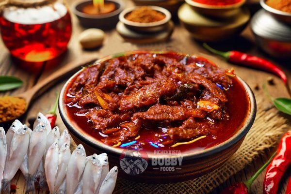 Fresh small fishes (nethallu/anchovies) are spiced, fried, and pickled in cold-pressed oils to create a tangy, spicy, and crunchy delicacy loved across coastal Andhra and Telangana.